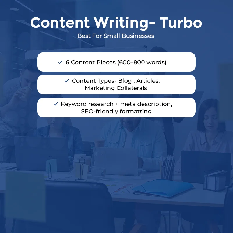 The Mango Marketing Content Writing Turbo Plan is designed for small businesses that need regular, high-quality content to stay competitive. This plan includes 6 custom-written content pieces per month, each ranging from 600 to 800 words. You can choose from blogs, articles, or marketing collateral, ensuring the content aligns with your business goals. The plan also offers keyword research and meta descriptions to improve search engine optimization (SEO) efforts. Additionally, the content will be formatted to be SEO-friendly, helping to increase online visibility and engagement. It’s an excellent choice for businesses focused on content marketing and growth.